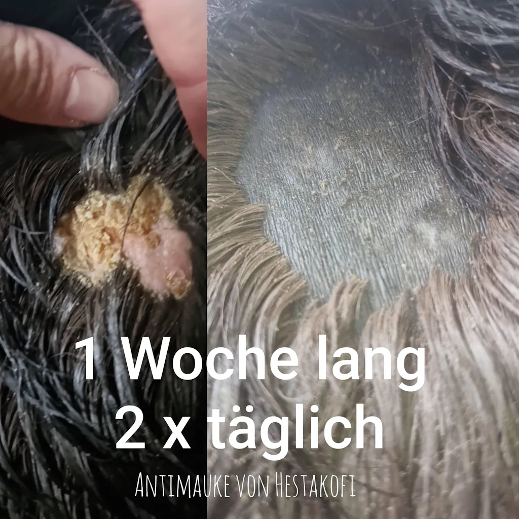 Mein Pony hatte leichte Maukekrusten an einem Bein. Nach nur wenigen Behandlungen mit dem Antimauke wurden die Krusten deutlich weniger. Nach 2 Wochen ist nur noch eine kleine Stelle an der Haut. Bin sehr begeistert und denke die kleine Kruste wird auch in den nächsten Tagen verschwunden sein.